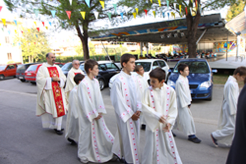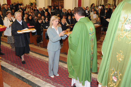 All'offertorio abbiamo portato all'altare una chiave fatta con il pane. Simbolicamente vuole rappresentare le chiavi delle nostre case, dei nostri cuori, delle nostre anime. Le nostre case perché siano aperte all'accoglienza, i nostri cuori alla tua amicizia, le nostre anime ai tuoi insegnamenti cristiani.