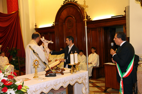 in cammino; l'esposizione in chiesa, della copia autentica della Santa Sindone;